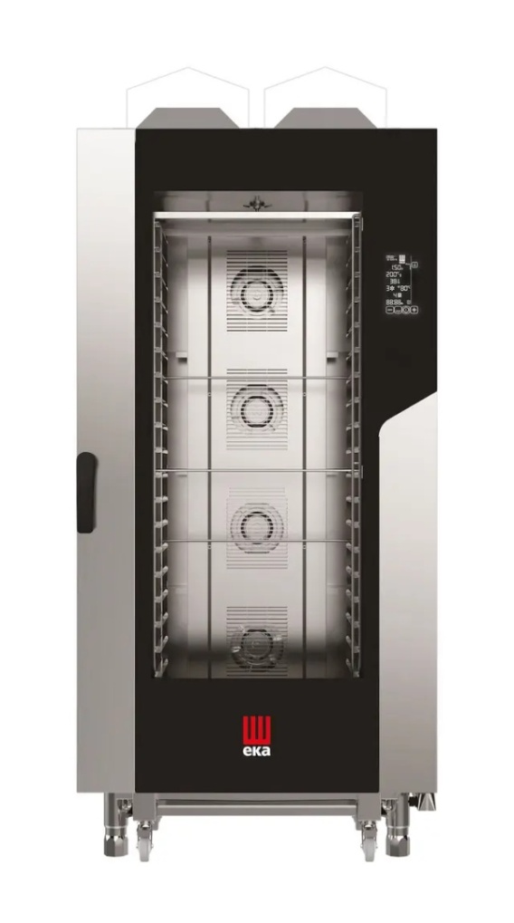 Seria nowoczesnych pieców konwekcyjno-parowych Millennial Black Mask wyróżnia się czarnym, 7-calowym, dotykowym panelem sterowania, który po wyłączeniu pieca całkowicie znika w czarnej otoczce drzwi pieca. Grupa pieców Black Mask Gastro dla gastronomii – z mniejszą komorą pieczenia wyposażoną w prowadnice do pojemników GN 1/1 Grupa pieców Black Mask Bakery dla cukiernictwa i piekarnictwa – z większą komorą pieczenia wyposażoną w prowadnice na blachy 600×400 mm W obu grupach występują piece w czterech wielkościach, umożliwiające przygotowanie od 72 do 480 posiłków dziennie Piece każdej grupy dostępne w wersji elektrycznej i gazowej Piece Millennial Black Mask posiadają 2 opatentowane rozwiązania: Airflowlogic™ – Innowacyjne rozwiązanie polegające na całkowitym przeprojektowaniu deflektora (osłony wentylatora). Efektem tego zabiegu jest poprawa cyrkulacji powietrza, dzięki której osiągnięto najlepsze wartości w równomiernym gotowaniu na każdym poziomie i w każdym miejscu pojemnika GN lub blachy 600×400 mm. Wybierając piec Millennial z patentem Airflowlogic™, wybierasz najwyższą jakość pracy w kuchni.Humilogic™ – Nowy system nawilżania polegający na podawaniu wody bezpośrednio z wentylatora. Zapewnia on wysoki poziom wilgoci i znacznie mniejsze zużycie wody. W systemie tym para dociera do wnętrza gotowanych potraw, co wpływa na podkreślenie ich naturalnego smaku i aromatu. Humilogic™ to rozwiązanie dla najlepszych szefów kuchni, oczekujących też najlepszych efektów swojej pracy. 1-punktowa sonda – do określania i mierzenia temperatury wewnątrz gotowanego produktuElektroniczny, 7-calowy, dotykowy panel sterowania Sterowanie elektroniczne umożliwiające bardzo precyzyjne ustawienie żądanych parametrów gotowania Wszystkie parametry i funkcje wskazywane w sposób numeryczny lub za pomocą ikon Panel sterowania pieców Millennial Black Mask umożliwia korzystanie z wielu nowatorskich funkcji: Automatyczny system myjący – Standardowo montowany w piecach elektrycznych Gastro i Compact– 4 programy mycia: eko, normalny, intensywny, płukanie, dostosowane do różnego poziomu zabrudzenia komory– Aż do 30% oszczędności wody dzięki nowej głowicy myjącej – oszczędność pieniędzy i ochrona środowiska naturalnego– Opcjonalny w piecach gazowych Pre-heating – umożliwia wstępne rozgrzanie komory pieca do temperatury o 30 stopni wyższej od zadanej Holding – utrzymywanie potrawy w odpowiednio wysokiej temperaturze bezpośrednio po zakończeniu cyklu gotowania Cooldown – szybkie schłodzenie komory pieca w celu rozpoczęcia kolejnego procesu gotowania, ale wymagającego znacznie niższej temperatury Port USB do łatwego i szybkiego pobierania i wgrywania receptur gotowania oraz danych HACCP Proofer – piec pełni funkcję komory rozrostu – funkcja przydatna w wersjach piekarniczo-cukierniczych Holding Cabinet – piec pełni funkcję szafy bankietowej, utrzymuje temperaturę serwowania i odpowiednie nawilżenie dań do momentu wydawania posiłków Opóźniony start pieca aż do 24 godzin – funkcja przydatna w celu przygotowania pieca lub dania przed przyjściem personelu do pracy Książka kucharska na 100 receptur, każda z możliwością ustawienia 10 kolejno następujących po sobie kroków3 prędkości wentylatora: maks. 2800 obr./min, min. 1500 obr./minMoc wentylatora: normalna, półstatyczna, ½ mocy Gotowanie z wykorzystaniem funkcji Delta T10-stopniowa regulacja zaparowania pieca Regulacja temperatury w zakresie 30°C÷270°C dla pieców elektrycznych oraz 30°C÷260°C dla pieców gazowych Ustawianie czasu pracy do 11 h 59 min lub praca ciągła non stopMożliwość zapisania dnia i aktualnej godziny Pozostałe cechy pieców Millennial Black Mask: Bezpieczne drzwi – blokada otwarcia przy 60°, 90°, 120° i 180˚ zapobiegająca oparzeniom obsługi poprzez niekontrolowany ruch drzwi po ich otwarciu Podwójnie przeszklone drzwi do komory oraz oświetlenie LED ułatwiające obserwację procesów zachodzących w piecu Zewnętrzna szyba pieca chłodzona grawitacyjnie dla zwiększenia bezpieczeństwa personelu Drzwi z zawiasem po prawej stronie (Możliwość zamówienia pieca z zawiasami po lewej stronie – opcja za dopłatą, realizowana wyłącznie w fabryce. Brak późniejszej możliwości zmiany drzwi)Wygodne otwieranie wewnętrznej szyby drzwi ułatwiające jej czyszczenieUszczelka drzwi z grubego i odpornego na wysokie temperatury silikonu, montowana w obudowie pieca, łatwa do samodzielnej wymiany bez konieczności wzywania serwisu Izolowana obudowa pieca – oszczędność energii elektrycznej, większe bezpieczeństwo personelu kuchni Rynienka pod drzwiami zapobiegająca kapaniu skondensowanej pary, szczególnie podczas gotowania w cyklu mieszanym i na parze – sucha podłoga pod i przed piecem to gwarancja bezpieczeństwa pracy personelu Komora pieca wykonana z wysokiej klasy stali nierdzewnej AISI 304 Tłoczona komora pieczenia z zaokrąglonymi narożnikami ułatwiającymi czyszczenie pieca Obudowa wykonana w całości ze stali nierdzewnej Współczynnik szczelności: IPX 4 – wersje elektryczne, oraz IPX3 – wersje gazowe Regulowane nóżki umożliwiające idealne wypoziomowanie pieca niezbędne do właściwej pracy urządzenia Wymagane podłączenie do prądu, wody uzdatnionej, kanalizacji Piece gazowe:Przystosowane fabrycznie do gazu ziemnego GZ50 (oznaczenie polskie), czyli G20 (oznaczenie europejskie)Dostarczane z dodatkowymi dyszami na gaz propan-butan Podłączenie do gazu: 1/2”.