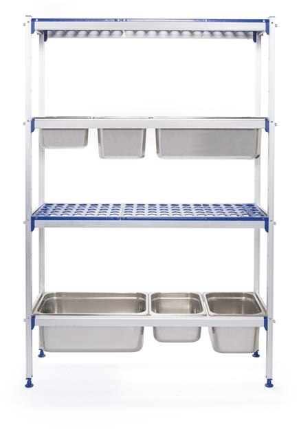 - Możliwość umieszczenia pojemników GN 1/1 bezpośrednio na poprzeczkach regału zamiast półek