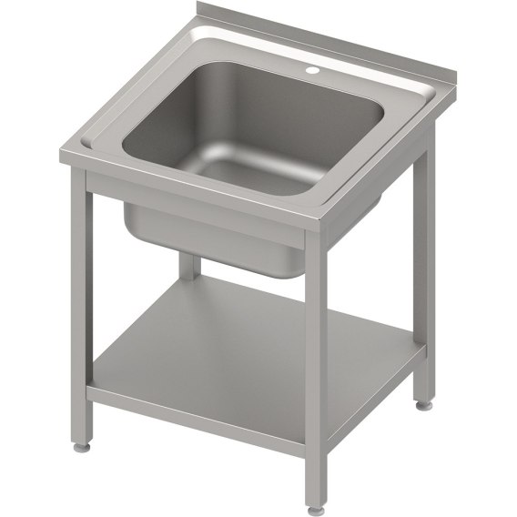 • Stół stalowy z półką ze zlewem 1-komorowym, spawany, blat tłoczony, 600x600x850 mm