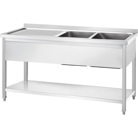 Stół ze zlewem 2-kom. (P),z półką, Gredil, 1400x600x850 mm skręcany